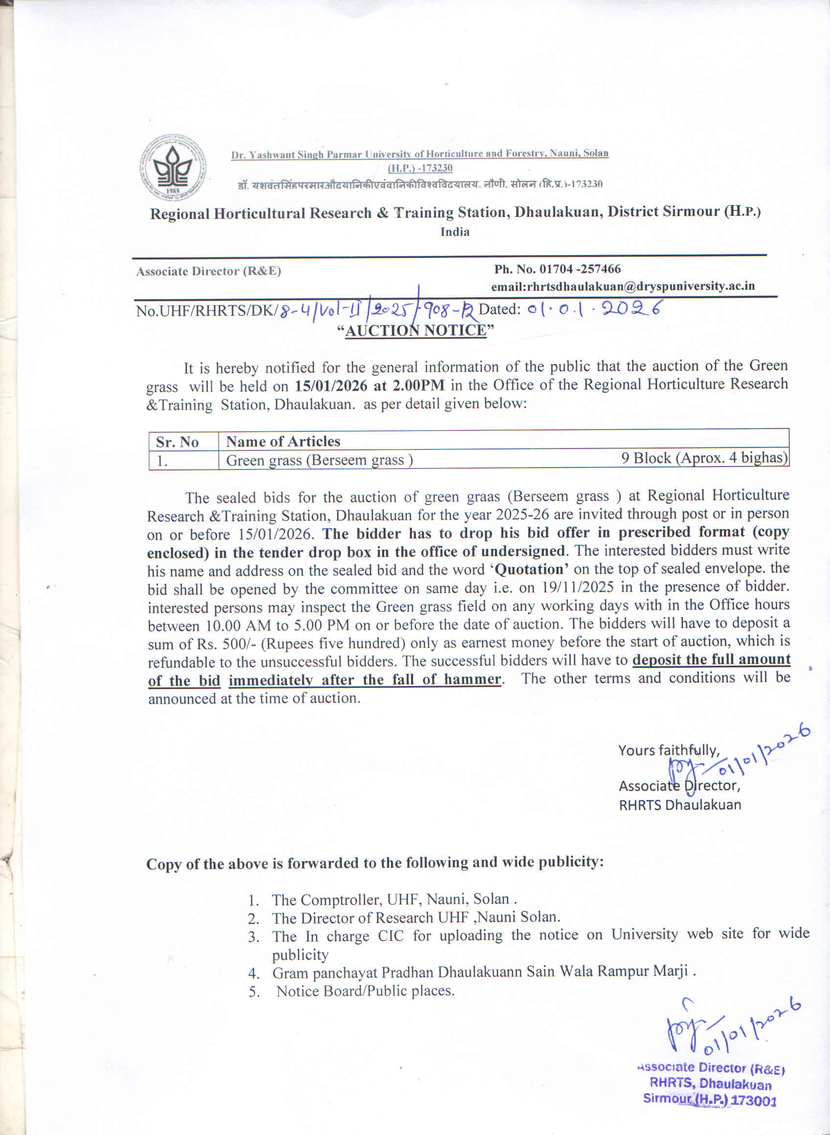 - Auction notice for the Citrus fruit crop at Regional Horticulture Research & Training Station, Dhaulakuan. -->