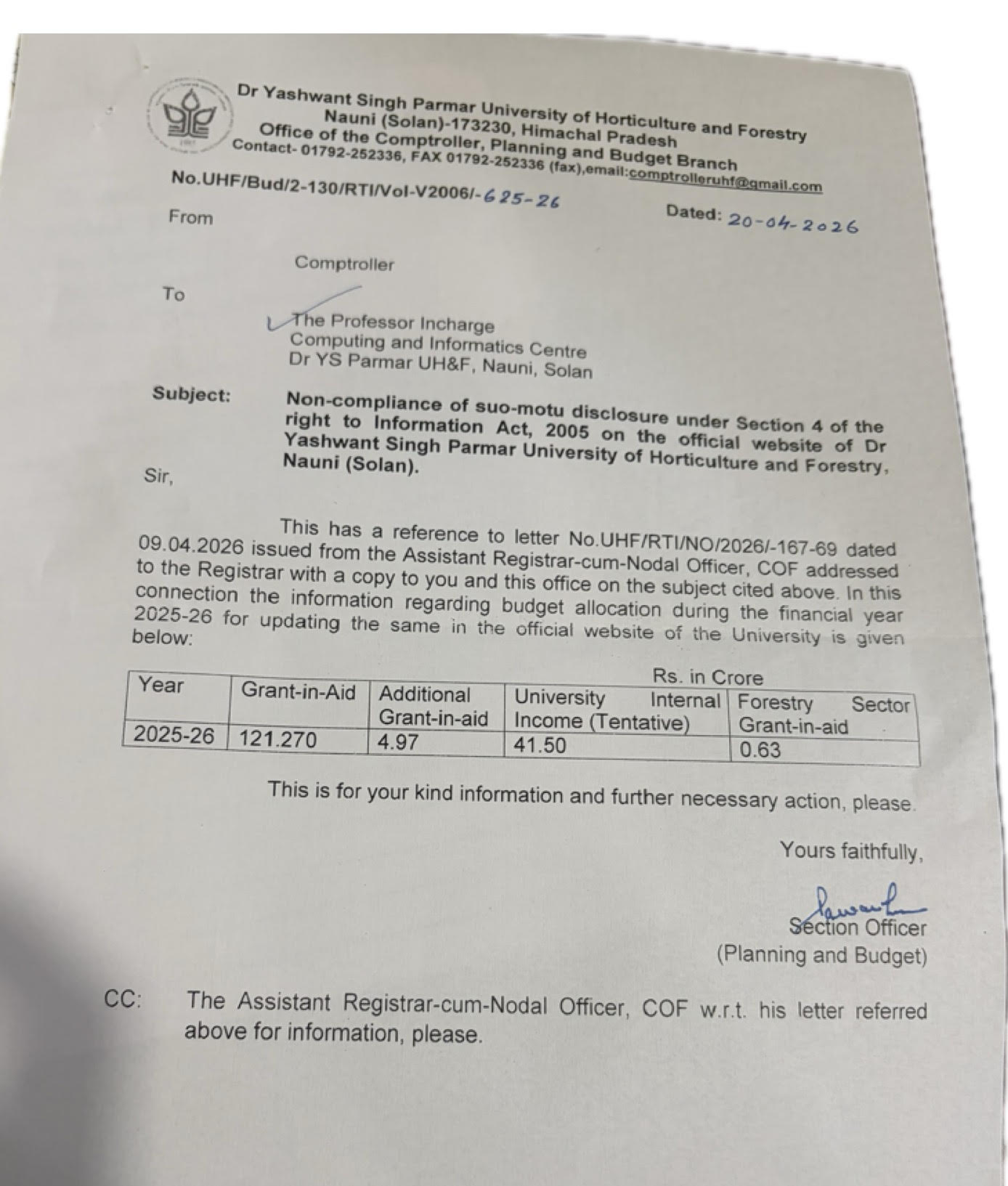 | 25 | Directorate of Research | 126 | Khazana Ram, Finance Secy. NTPEWS, C/o Vaidika Patanjli Store Nauni, Solan HP | Offline | 27.06.2023 | Asked to deposit requisite fee for copies of information on dated 07.07.2023 |