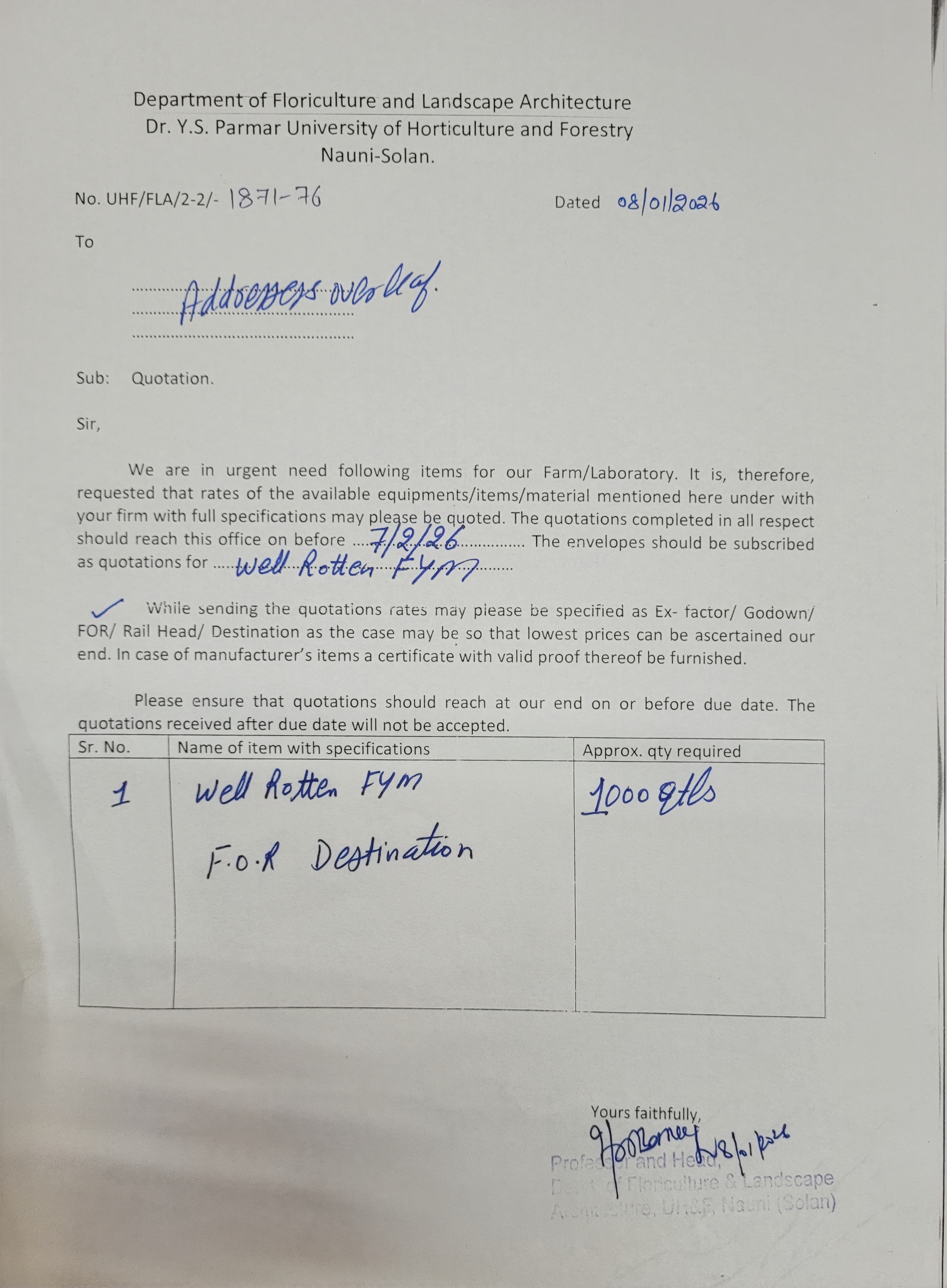 NIQ dated 08.01.2026 of Well Rotten FYM.